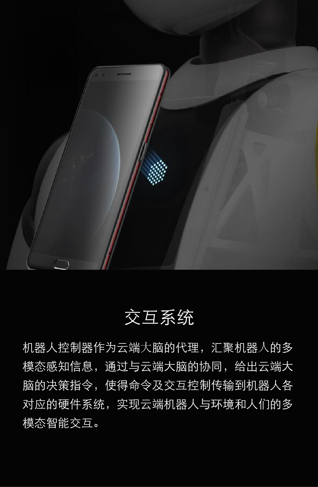 器人各对应的硬件系统,实现云端机器人与环境和人们的多模态智能交互。
